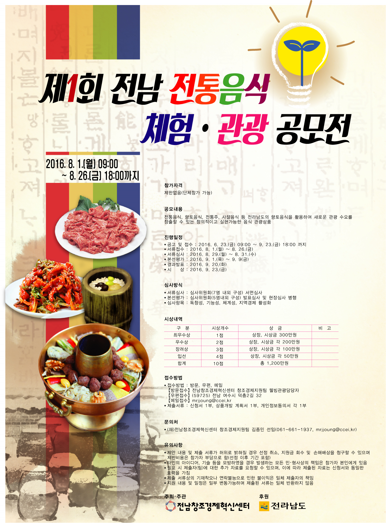 [전남창조경제혁신센터]『제1회 전남 전통음식 체험·관광 공모전 모집』공고