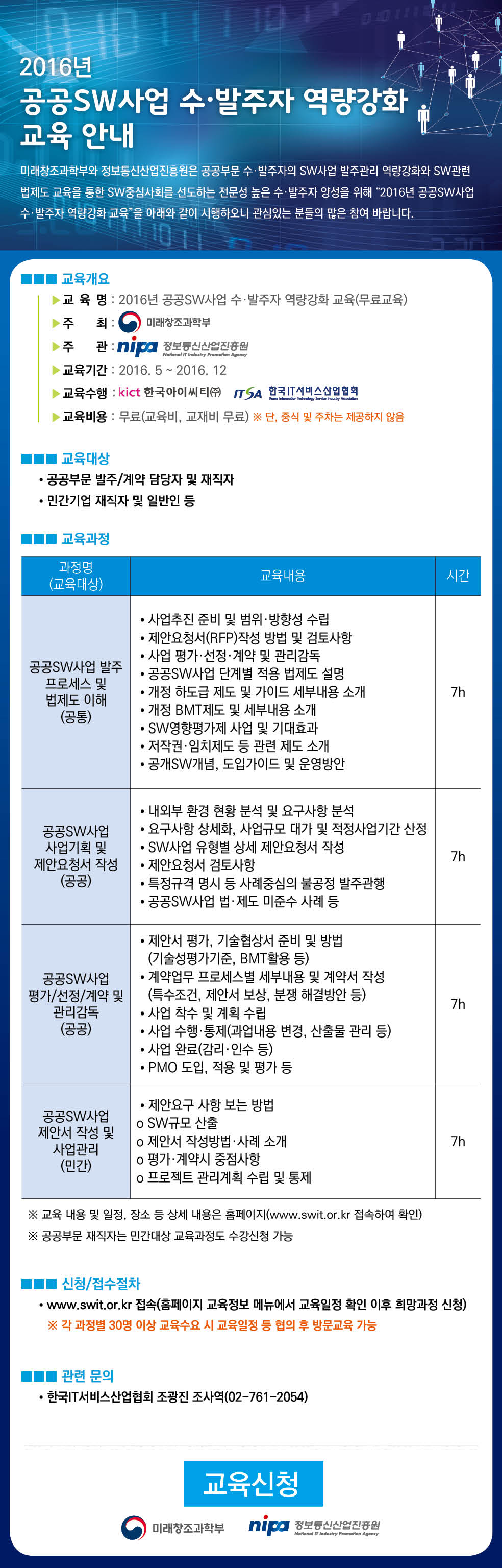 2016년 공공SW사업 수·발주자 역량강화 교육 안내 (광주)