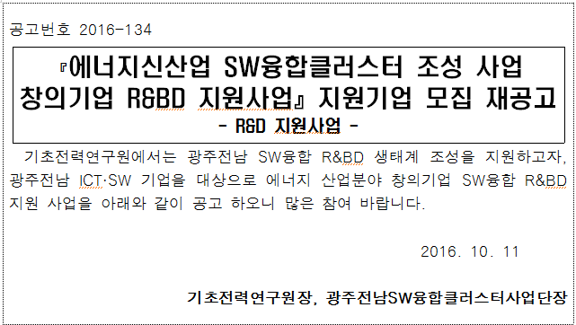 [기초전력연구원] SW융합클러스터 R&BD 지원사업 재공고