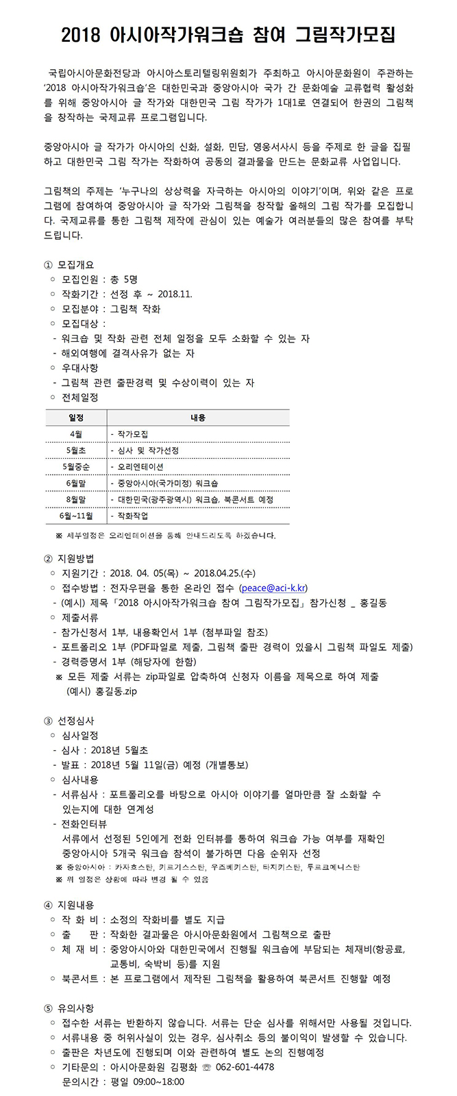 [아시아문화원]2018 아시아작가워크숍 참여 그림작가모집