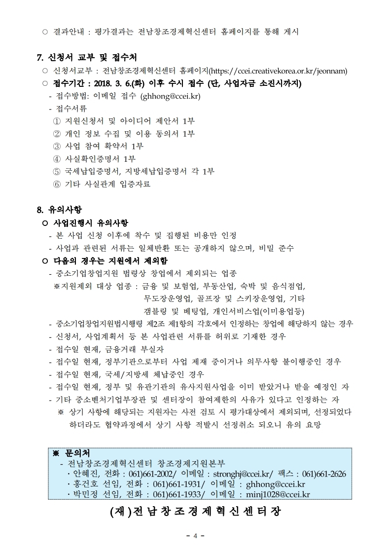 연락처 : <061-339-6903>, <ogm@jcia.or.kr>, 팩스 : <061-331-5004>