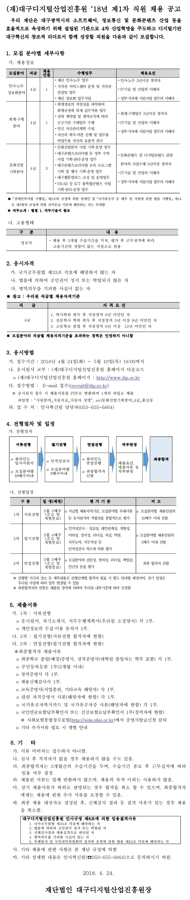 [(재)대구디지털산업진흥원]2018년 직원 채용공고문