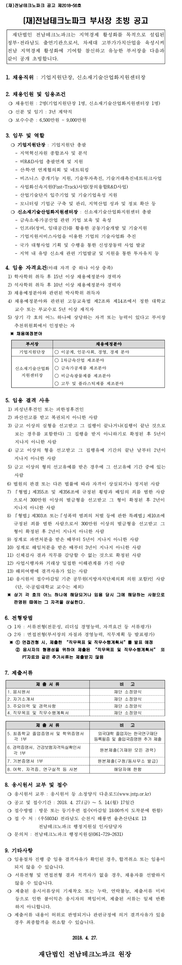 [(재)전남테크노파크]부서장 초빙 공고문