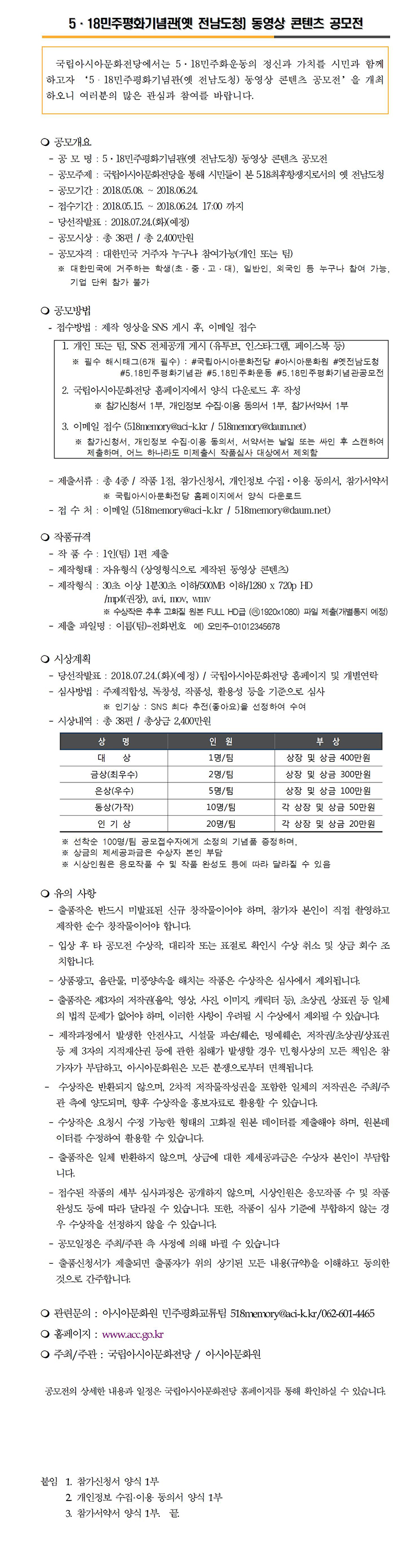 [아시아문화원]5·18민주평화기념관(옛 전남도청) 동영상 콘텐츠 공모전