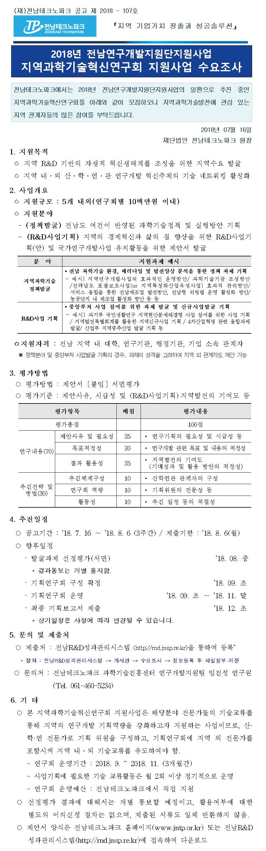 [전남테크노파크]2018년 전남연구개발지원단 지역과학기술혁신연구회 지원사업 과제공고