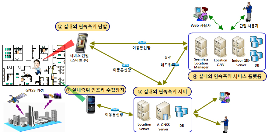 - 실내에 설치된 와이파이를 이용하여 스마트폰으로 오차범위 5m내외의 끊김없는 정확한 위치정보서비스 제공