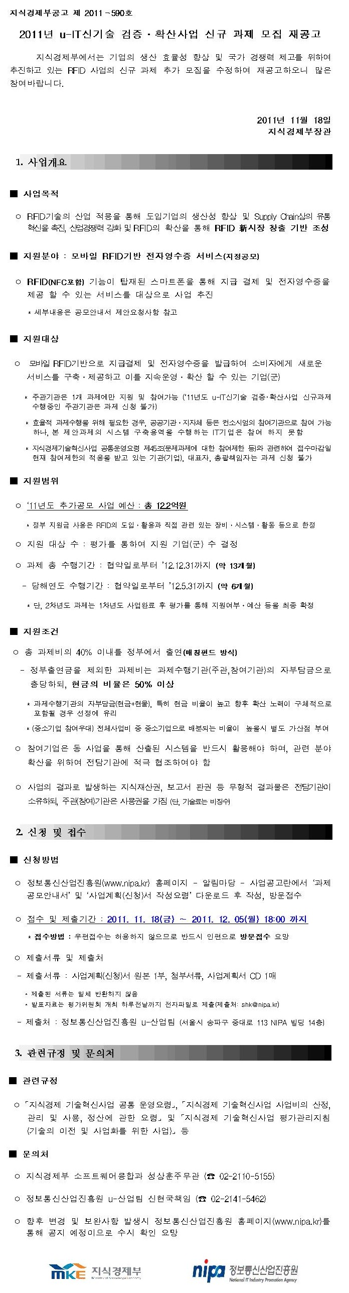 [NIPA] 2011년 u-IT신기술검증확산사업 신규과제 모집 재공고