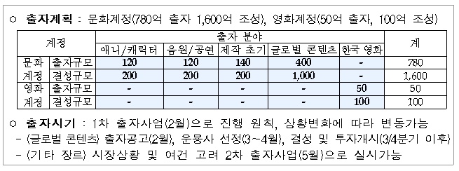 - 모태펀드를 통해 총 1,700억 규모 콘텐츠 펀드 추가조성