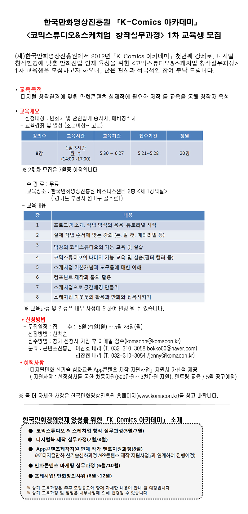 k-comics 아카데미, 코믹스튜디오&스케치업 창작실무과정 안내