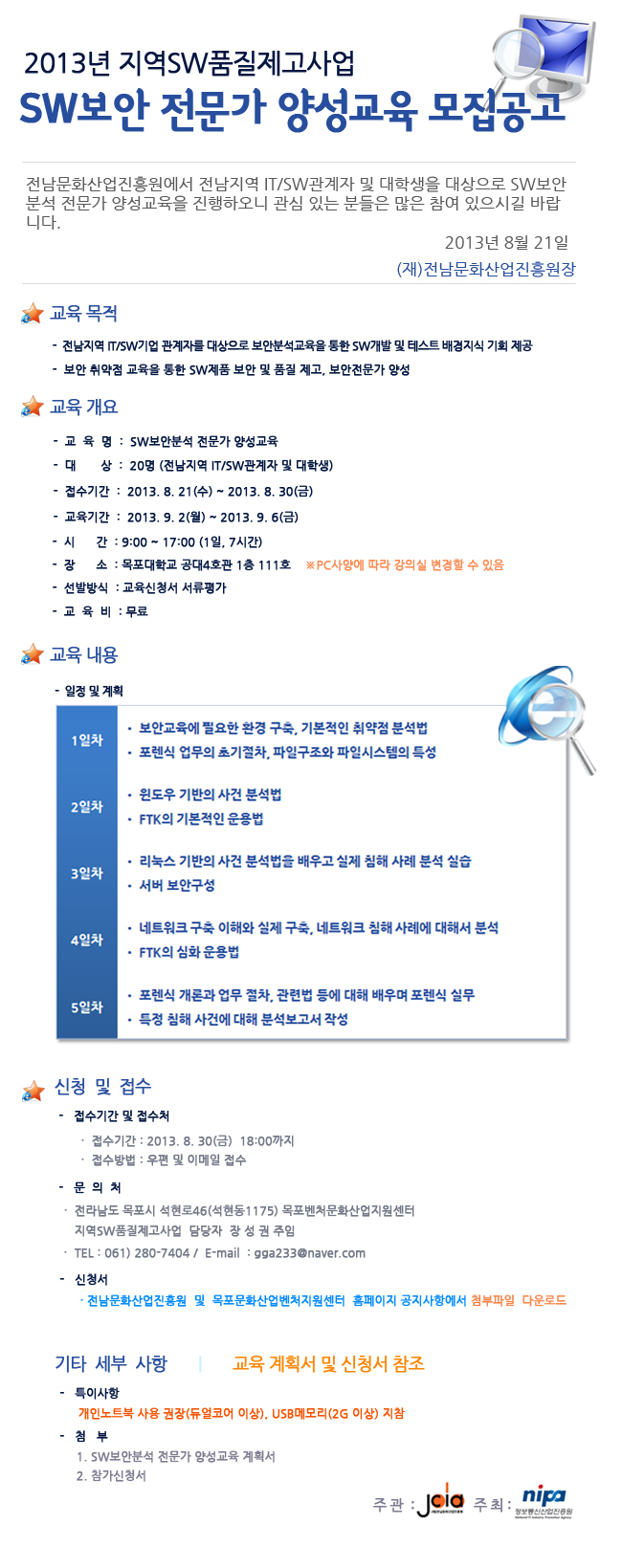 [공고 2013 - 60호] SW보안 전문가 양성교육 모집공고