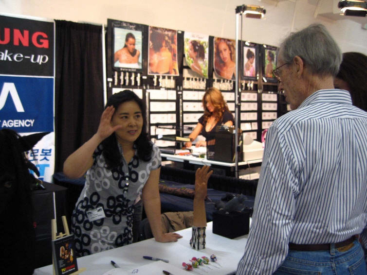 <2007년 LA Trade Show 참가부스 모습> <특수분장사 딕스미스(Dick Smith)에게 설명하는 모습>