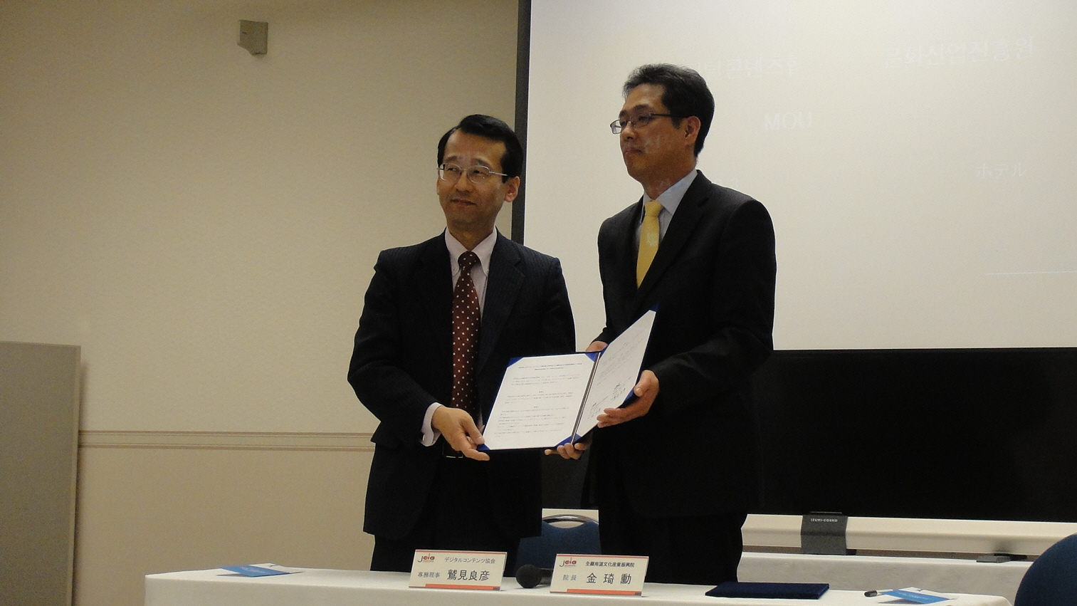 진흥원은 3월 30일 ‘일본디지털콘텐츠협회(DCAj : Digital Content Association of Japan)’ 및 ‘일본영상산업진흥기구(VIPO : Visual Industry Promotion Organization)’와 디지털콘텐츠산업의 활성화 및 국제 프로젝트 상호협력에 대한 업무 협약식을 가졌습니다.