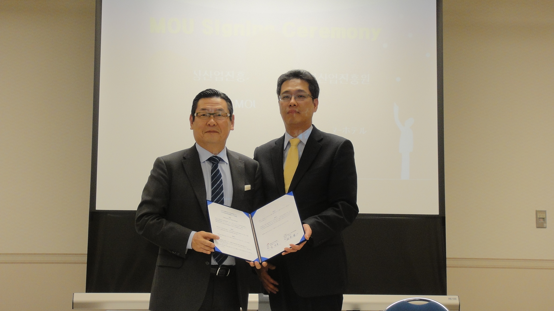 <DCAj와 MOU 체결장면 - 스미 요시히코 전무이사, 김기훈 원장>