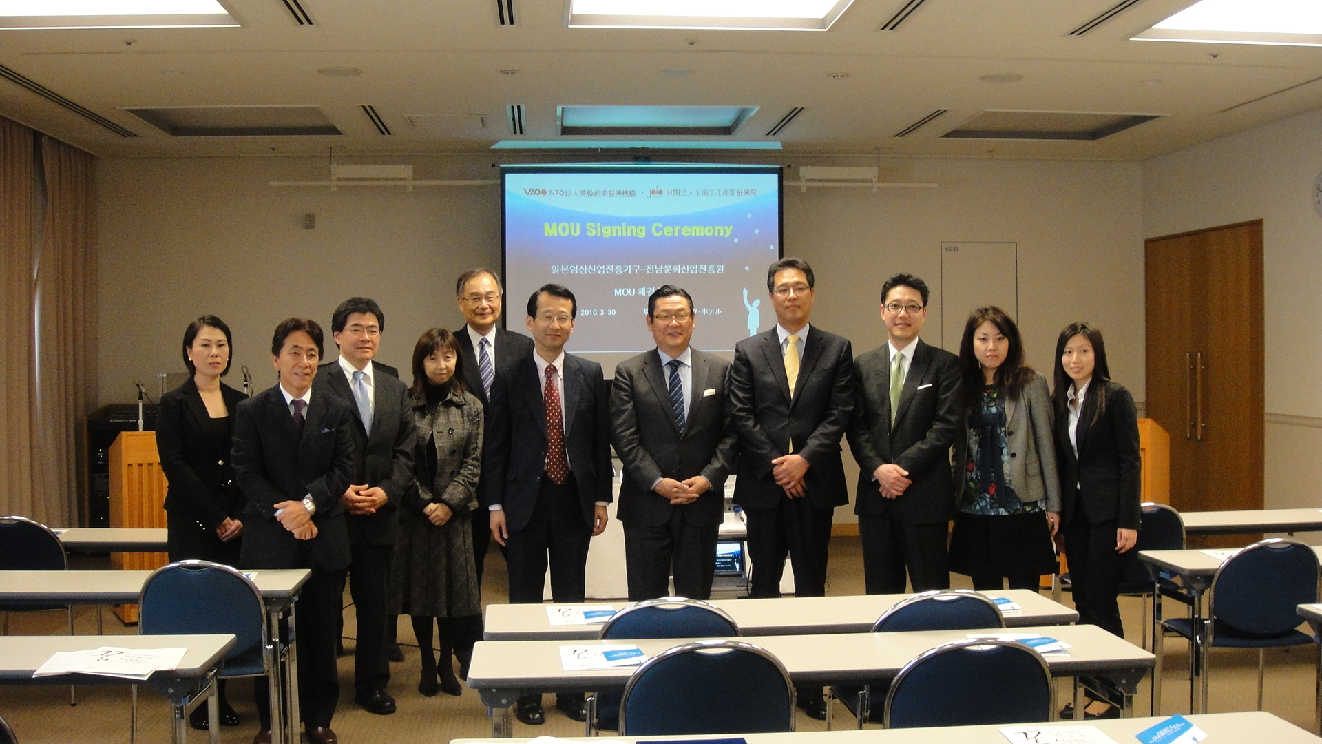 이번 MOU에서는 전남문화산업진흥원 김기훈 원장을 비롯하여 일본영상산업진흥기구의 이사장인 사코모토 준이치씨와 일본디지털콘텐츠협회 스미 요시히코 전무 등 관계 인사 30여명이 일본 동경에서 자리를 함께 했습니다.
