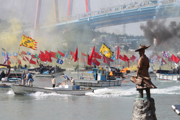명량대첩은 왜란의 위기에서 우리나라를 구한 결정적 계기가 되었고, 전라남도 해남과 진도에서는 이를 기념하고 충무공 이순신과 전라도 민초들의 정신과 얼을 기리기 위해 매년 “명량대첩축제”를 열고 있습니다. 올 해 축제는 ‘회오리 바다 울둘목’을 주제로 전남 해남군 우수영관광지, 진도군 녹진관광지 일원, 그리고 울둘목 일원에서 10월 8일(금)부터 10일(일)까지 3일간 진행됩니다. 지난해보다 훨씬 풍성해진 프로그램과 시민들도 함께 체험하고 참여할 수 있는 다양한 체험프로그램들로 준비되어 있습니다.