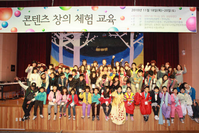 전남의 도서지역 어린이들에게 창의력 향상과 문화콘텐츠에 대한 이해를 높이기 위한 콘텐츠 창의 체험교육이 지난 11월 18일부터 21일까지 3일간 전남여성플라자에서 개최되었다. 전남문화산업진흥원이 주관한 이번 행사는 문화체험 기회가 상대적으로 적은 완도, 해남, 진도 등에 소재한 초등학교의 분교 재학생 46명이 초대되었다.