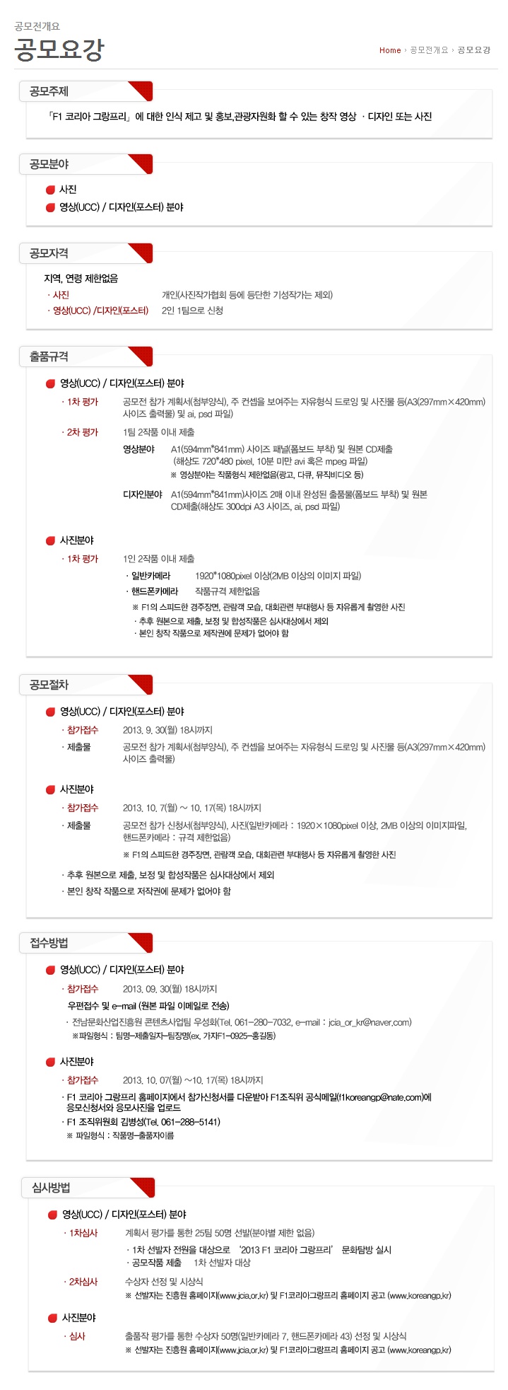 [공고2013-73호 ] 2013년 F1 코리아 그랑프리 [영상/디자인][사진] 공모전
