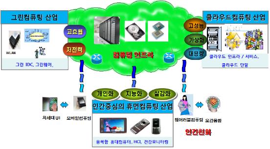 보다 구체적으로는 저희 학회에서는 사용자에 적합한 형태로 휴먼 컴퓨팅, IT 자원 및 서비스를 언제 어디서나 제공하는 클라우드 컴퓨팅, 고효율, 저전력의 친환경 그린 컴퓨팅 기술을 중점적으로 연구하고 이에 대한 정책적 대안을 제시하고 있습니다.