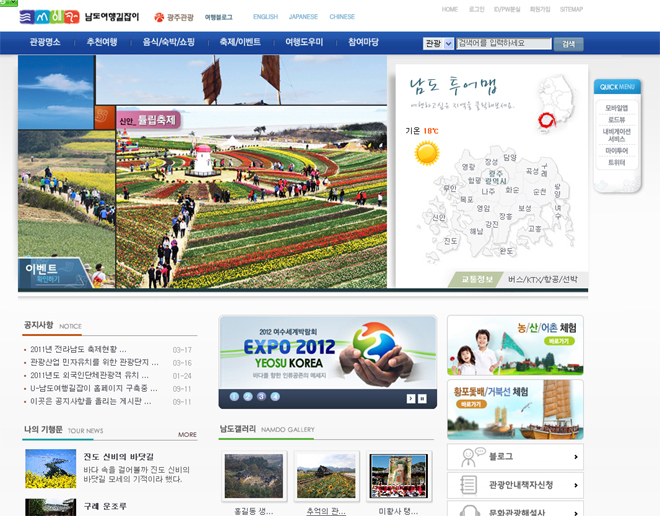 IT기술을 활용해 더욱 편리한 전남관광정보를 제공하고 음성, 지도 콘텐츠를 강화한 '남도여행길잡이' 서비스가 지난 3월 15일 개통되었다. 기존의 관광안내포털 '남도코리아'와 통합 개편된 홈페이지는 www.unamdo.net으로 사용자 편의를 고려한 다양한 기능을 갖추고 인터넷뿐만 아니라 스마트폰, 내비게이션 등으로도 서비스를 제공한다.