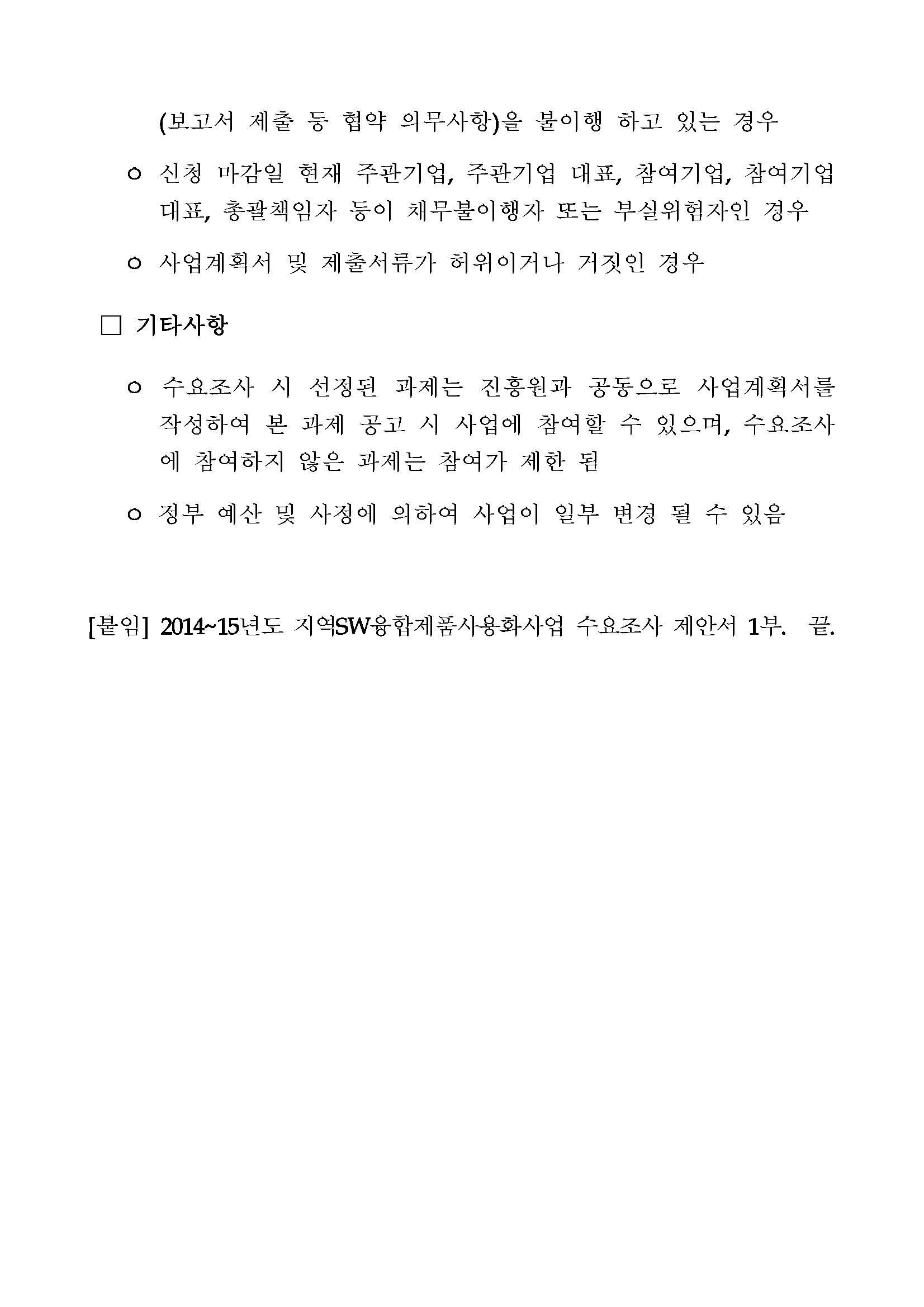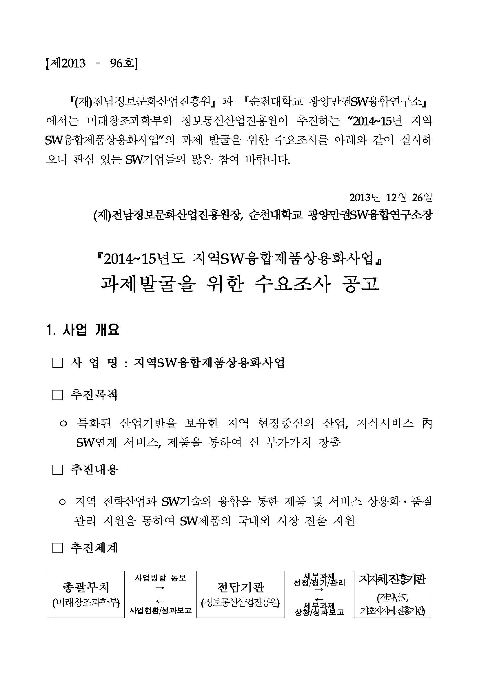 [공고2013-96호] "2014~15년 지역SW융합제품상용화사업" 과제발굴을 위한 수요조사 공고