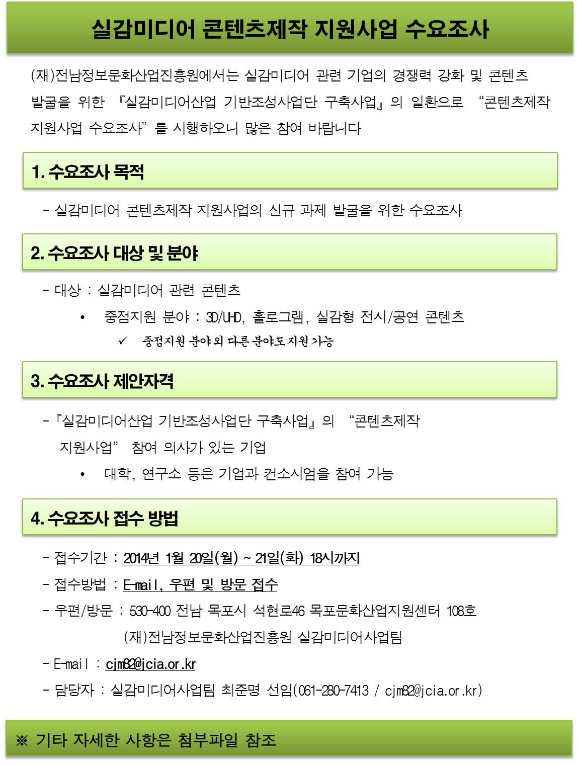 [2014-01] 실감미디어 콘텐츠제작 지원사업 수요조사 공고