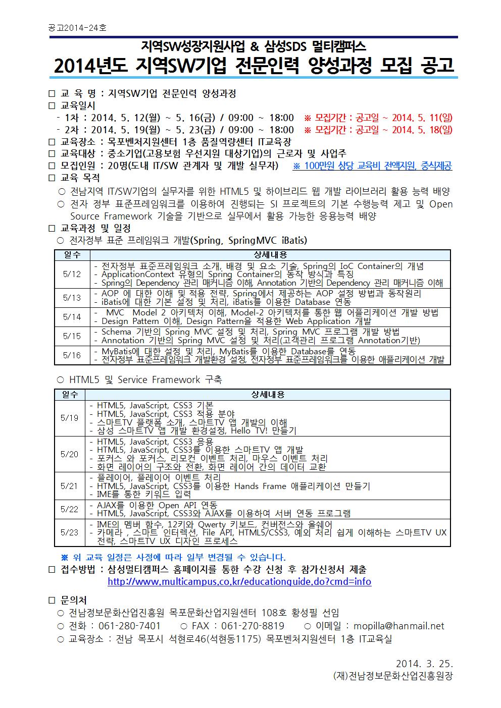 [공고 2014-24호]2014년 지역SW기업 전문인력 양성과정 모집 안내