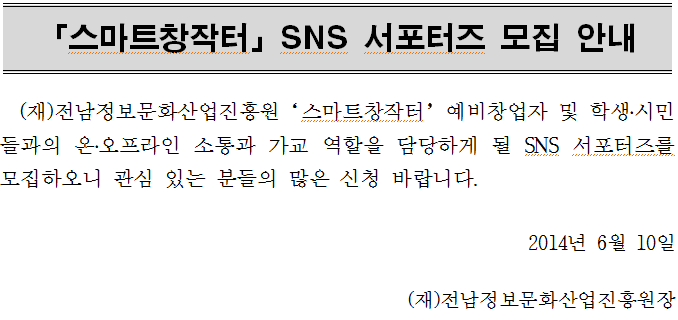 [공고 2014-60호] 2014년 스마트창작터 SNS 서포터즈 모집안내